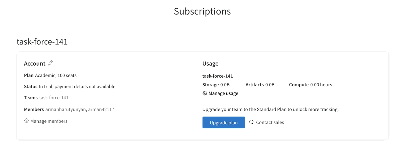 1. チームメンバーが既に W&B アカウント を持っていることを確認します。