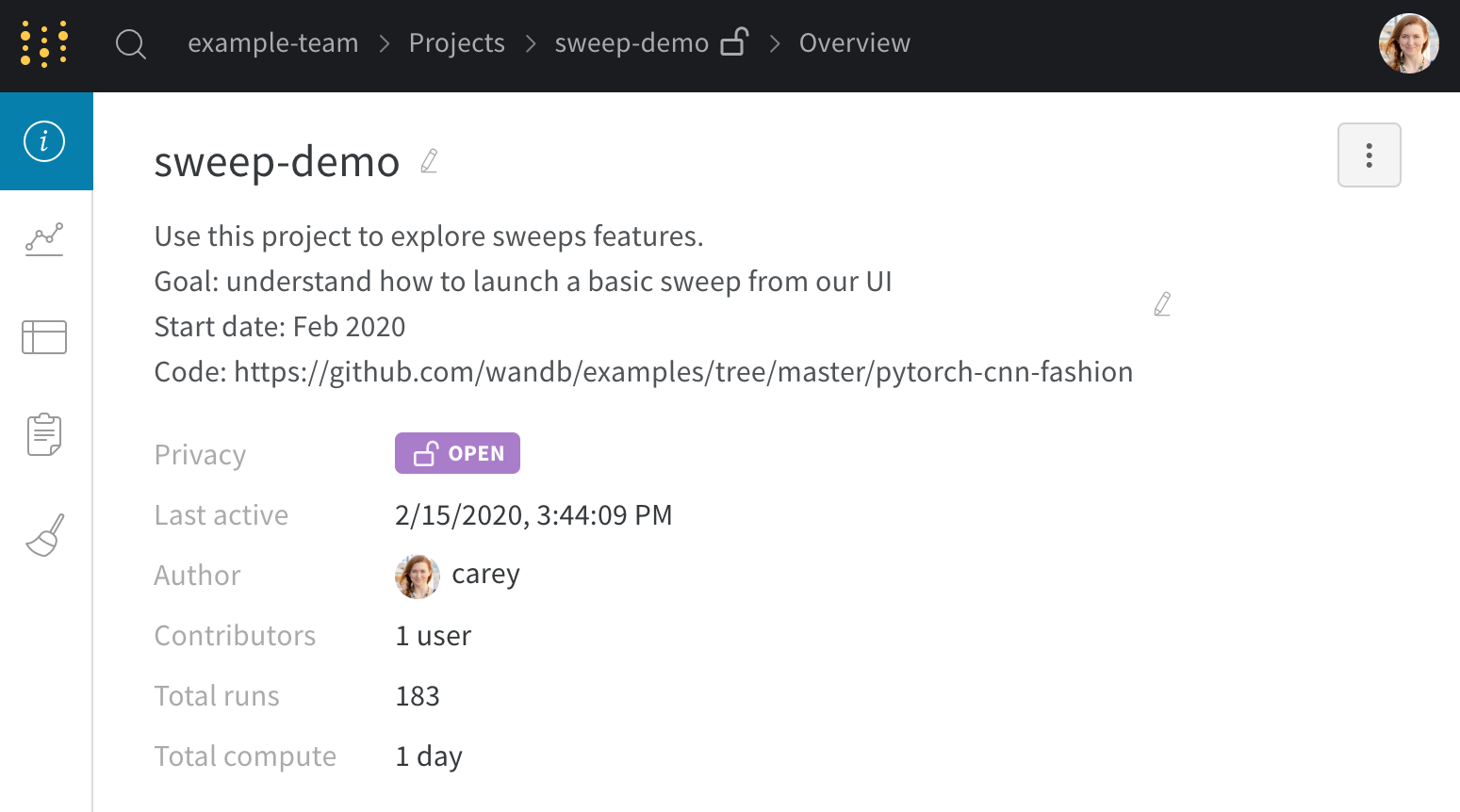 プロジェクトのWorkspaceは、実験を比較するための個人的なサンドボックスを提供します。Projectsを使用して、異なるアーキテクチャー、ハイパーパラメーター、データセット、前処理などで同じ問題に取り組むモデルを整理できます。