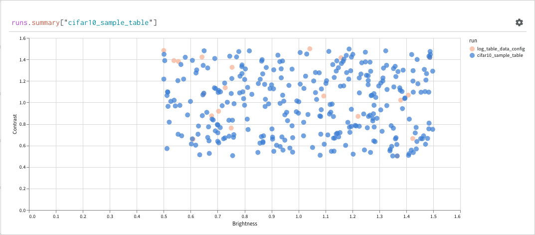 runs는 워크스페이스에 있는 Weave 패널 식에서 자동으로 주입되는 변수입니다. 그 "값"은 해당 워크스페이스에서 볼 수 있는 실행 목록입니다. 실행 내에서 사용할 수 있는 다양한 속성에 대해 여기서 읽어보세요.summary는 실행의 요약 객체를 반환하는 op입니다. 주의: ops는 "매핑"되며, 이 op는 목록의 각 실행에 적용되어 요약 객체 목록을 생성합니다.["cifar10_sample_table"]는 Pick op(대괄호로 표시됨)로, "predictions"의 파라미터를 가집니다. 요약 객체가 사전이나 맵처럼 작동하기 때문에, 이 연산은 각 요약 객체에서 "predictions" 필드를 "선택"합니다.