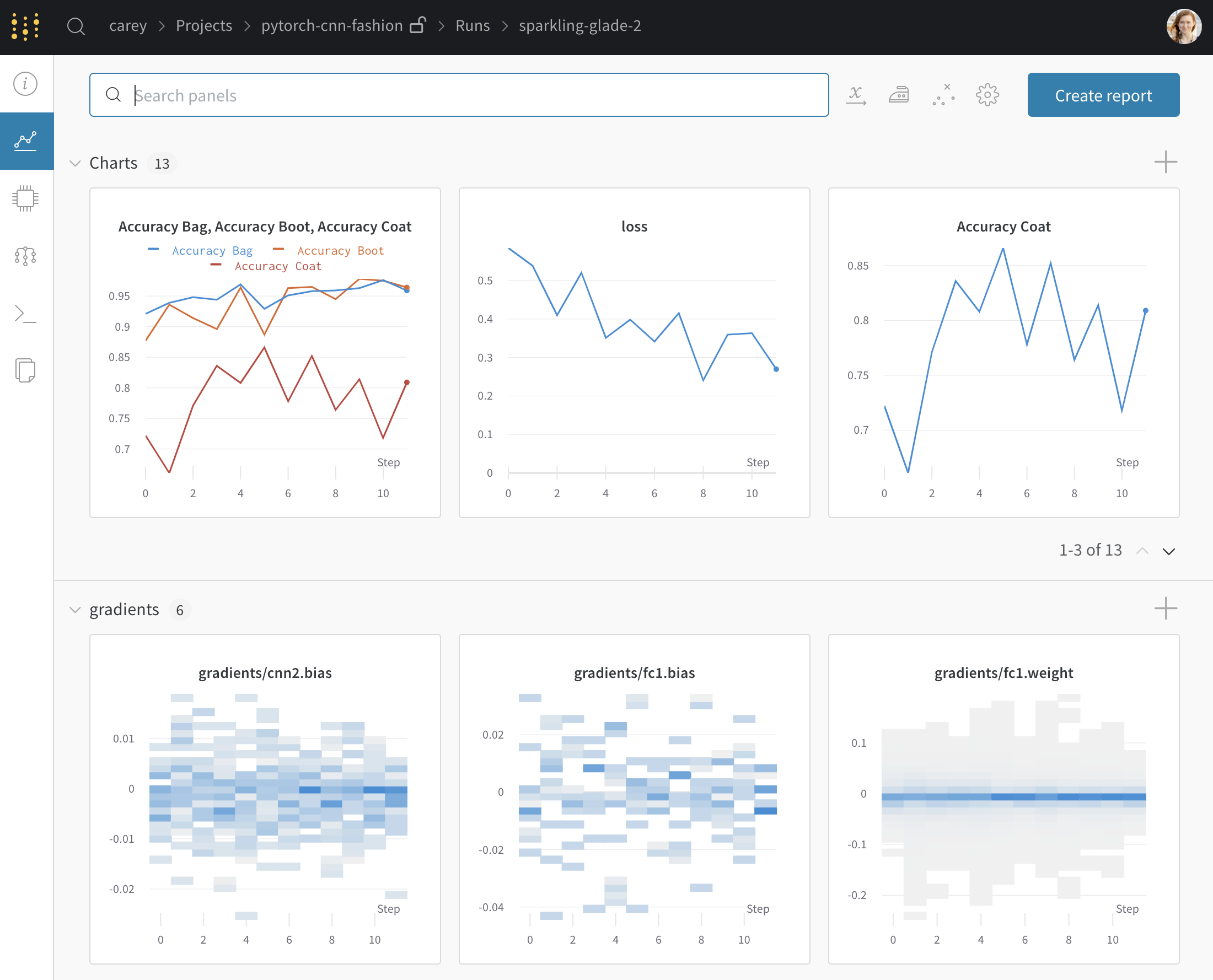 • 이 차트들을 얻으려면 wandb.log()로 데이터를 로그하세요