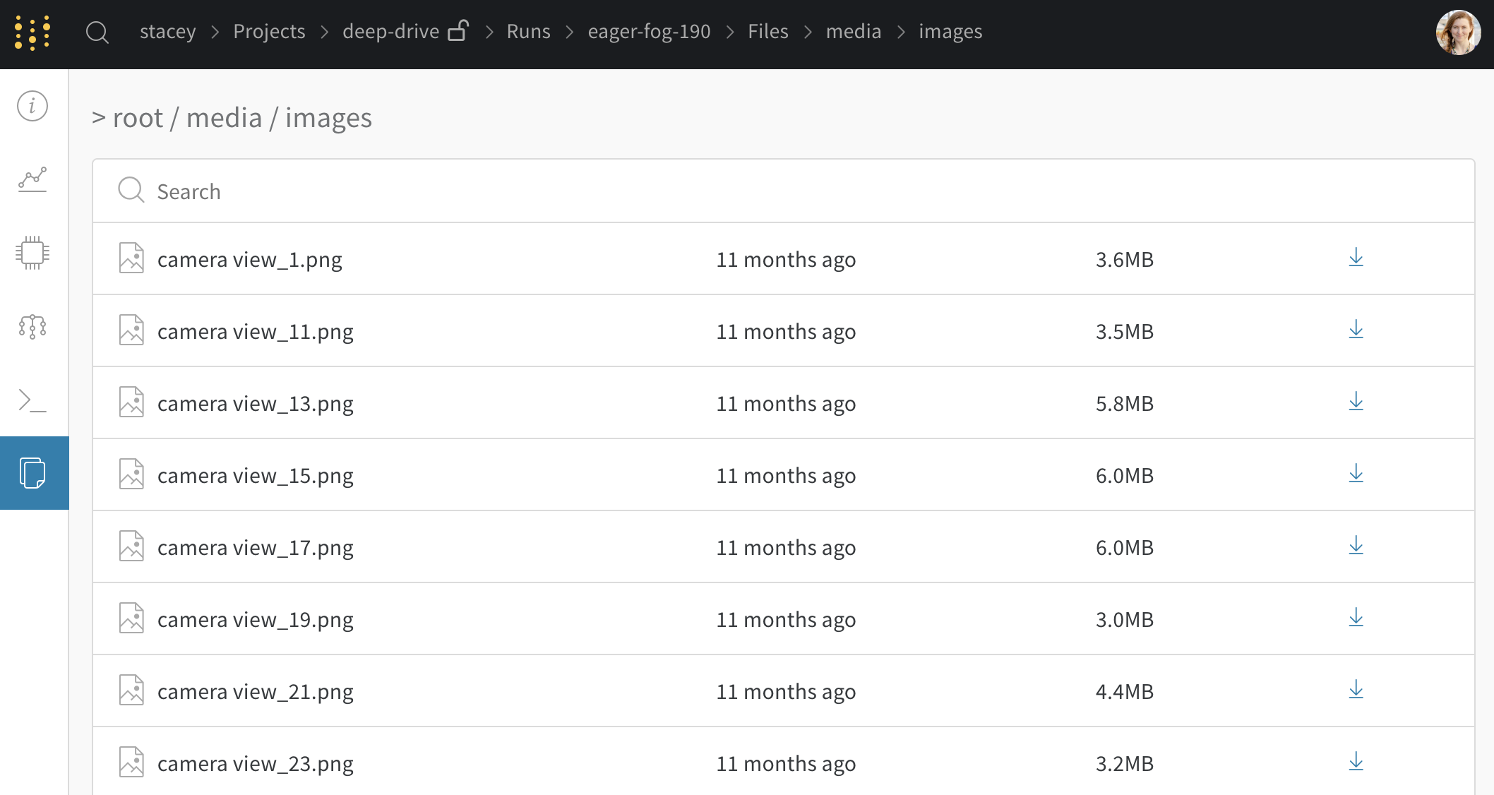 • 웹 앱에서 아티팩트 뷰어를 탐색하고 사용하는 방법에 대한 자세한 내용은 프로젝트 수준 Artifacts 탭 참조를 확인하세요 실시간 예시 보기 →