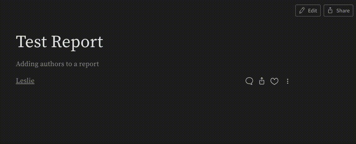 여러 사용자가 함께 리포트 작업을 할 경우, 그렇게 표시해야 합니다. 저희 리포트에서는 바로 그렇게 할 수 있으며, 리포트에 협력한 모든 사용자를 저자 줄에 추가할 수 있습니다. 이는 페이지 상단의 편집을 클릭하여 수행됩니다. 거기서 저자 줄의 오른쪽에 보이는 '+'를 클릭하여 리포트에 기여한 모든 팀 멤버를 추가할 수 있습니다.